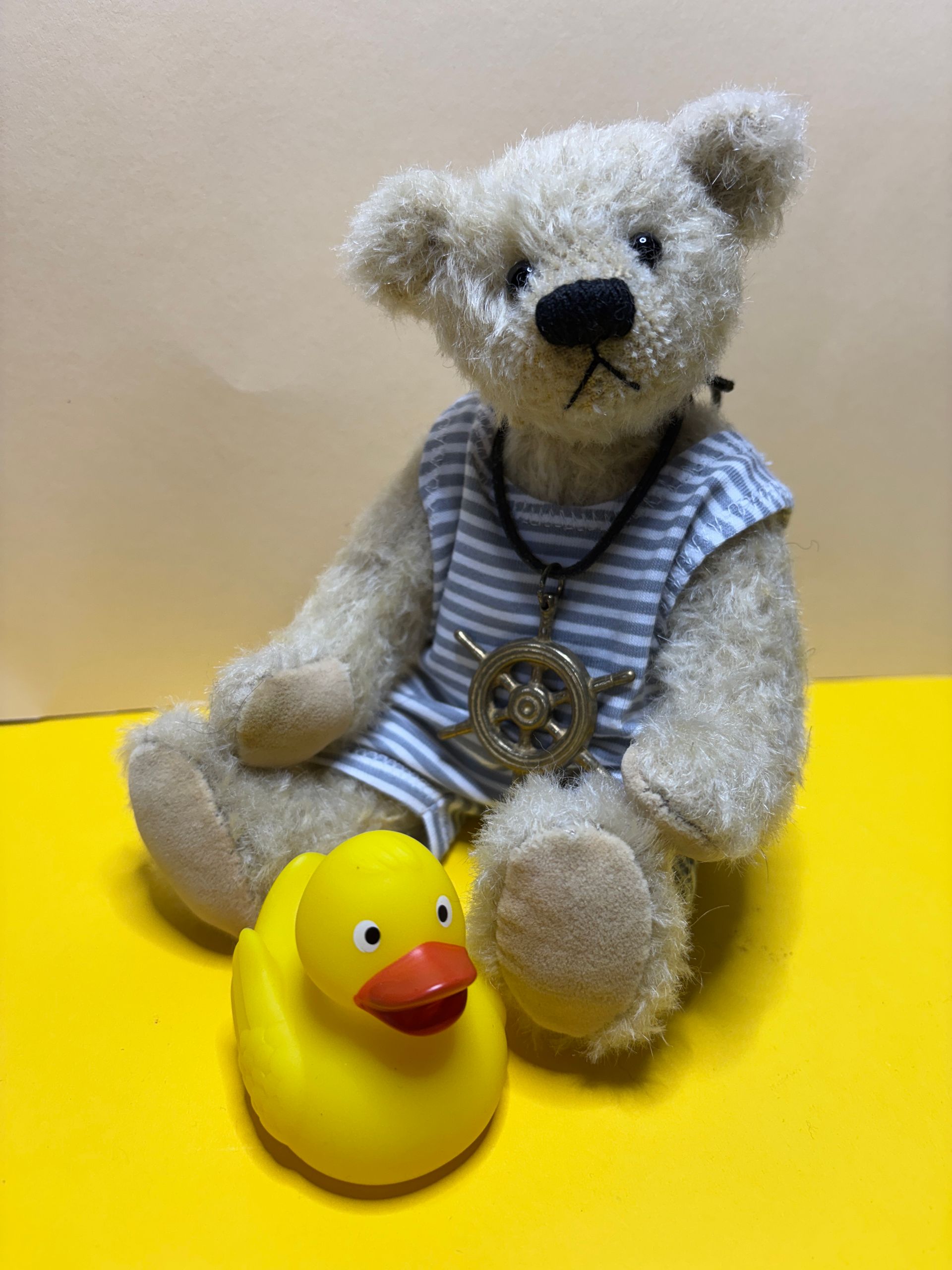 Torben ist 30 cm groß, er ist aus Mohair und mit Schafswolle und etwas Stahlgranulat gefüllt. Preis: 125,00 Euro